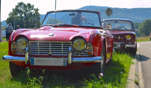 Le dimanche suivant, nous sommes allés au rendez-vous mensuel des possesseurs de véhicules anciens de la région colmarienne. D'une personne à l'autre, nous avons fait connaissance du président de la région est de l'Amicale Spitfire... qui mettait en vente sa TR4 rouge de 1962...